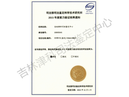 司法部司法鉴定科学技术研究所2015年度能力验证结果通知